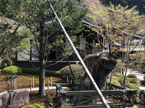 【寂光院】 ・・・ 京都市左京区大原草生町676 ![]() 訪問したのは4月下旬のこと。遅咲きの桜がきれいであった。 建礼門院の大原西陵の入り口。寂光院の東隣。 ![]() これは寂光院の山門に続く石段 ![]() 寂光院の山門 ![]() 本堂 実は2000年に火災で焼失している。2005年に再建。 境内には平家物語ゆかりのエピソード感にあふれた史跡が整備されている。 ![]() 建礼門院の庵跡。 後白河法皇が「女院のご庵室を叡覧あるに、軒には 「不毛地帯」(山崎豊子)では主人公の壱岐の恋人の千里が知人を案内している。「老杉がまわりに茂った平地に『御庵室遺跡』と記された碑が立っている。建礼門院が住った庵は今は失く、小石を積んだ苔むした石垣のみが、僅かに昔日の面影を伝えている。」 ![]() 諸行無常の鐘楼 ![]() え〜と、これは「姫小松」の切り株。 平家物語で「中島の松にかゝれる藤波の、裏紫に咲ける色」と記された松であったが、2000年の火事の影響で枯死、残念。 ![]() そしてこれは「 「池の浮草、浪に 後白河法皇が訪れたとき、女院は山へ行っていて留守であった。後白河法皇はこの池の様子を見て次の歌を詠んだ。 |