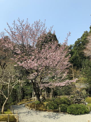 | え〜と、個人的に今まで桜の名所に桜の時期に訪れたことはなく、紅葉の名所に紅葉シーズンに訪ねたことはない。観光客で満員の場所に行くのは苦手で、とにかく避けてきた。 今回も外国人を含めた観光客が桜を鑑賞する時期をはずして訪れたつもりであったが、昨今の異常気象なのか、4月下旬になっても桜が咲いていた。 寂光院の「汀の池」に咲く桜があった。これこそ後白河法皇の歌に詠まれた汀の桜なのか。 |